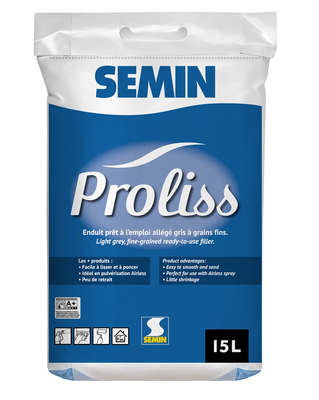 Semin Proliss Fin to gotowa gładź szpachlowa maszynowa o ultralekkiej formule, produkowana przez renomowaną francuską firmę Semin. Została stworzona z myślą o wydajnej aplikacji agregatem natryskowym (Airless), choć można ją również nakładać wałkiem lub ręcznie pacą.