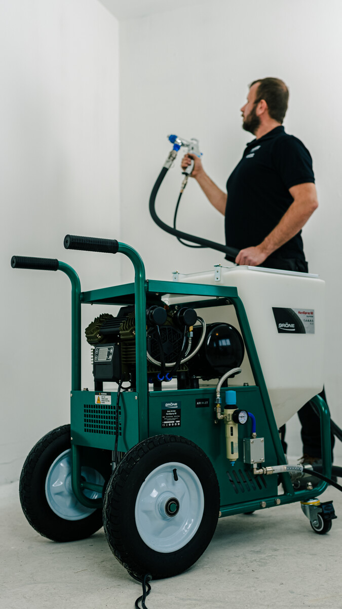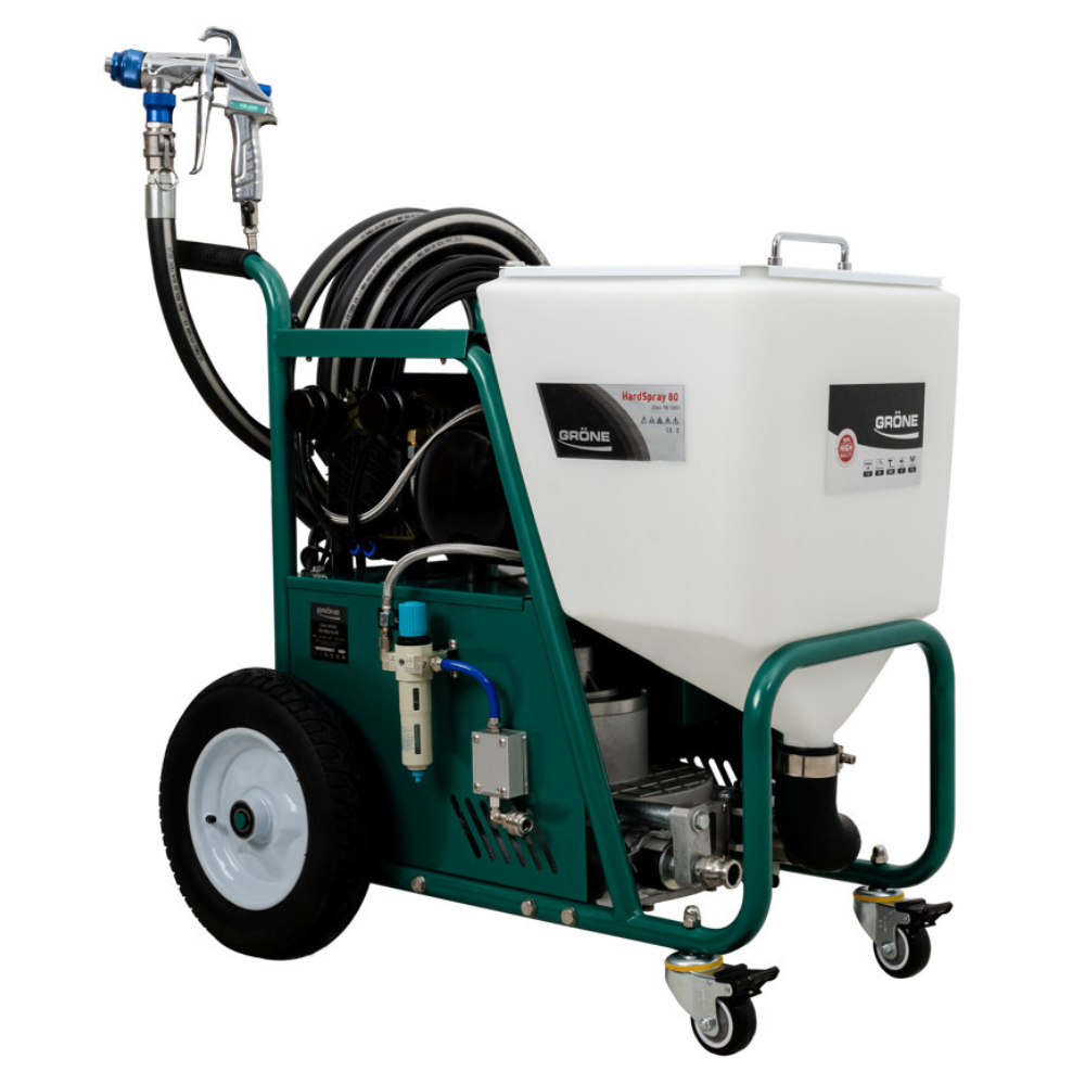 Gröne HardSpray 80 to wydajny agregat do tynkowania elewacji, przeznaczony do pracy z tynkami strukturalnymi, silikonowymi, silikatowymi oraz masami szpachlowymi. Idealny wybór dla firm wykonawczych oczekujących stabilnej, ciągłej pracy i wysokiej jakości wykończenia.