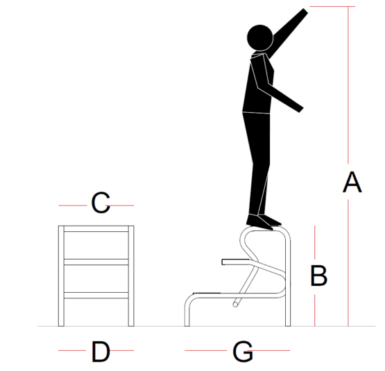 Stopnie o głębokości 20 cm – antypoślizgowe, ryflowane, zapewniają pełną stabilność i komfort pracy,