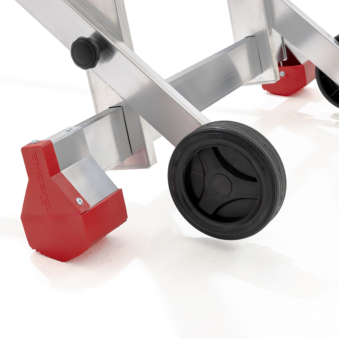 Dzięki zastosowaniu dużych kół jezdnych o średnicy 170 mm, podest magazynowy SMT jest łatwy do przestawienia nawet w zatłoczonych magazynach czy halach. Składany system pozwala na szybkie złożenie konstrukcji i ograniczenie przestrzeni magazynowej po zakończeniu pracy.