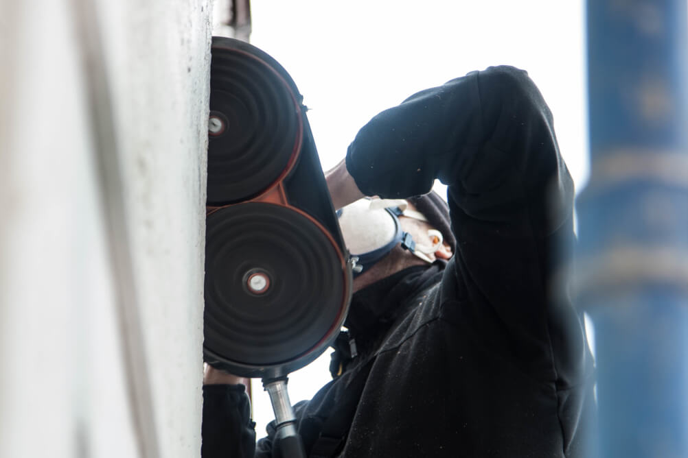 e) Należy unikać nienaturalnych pozycji przy pracy. Należy dbać o stabilną pozycję przy pracy i zachowanie równowagi. Dzięki temu można będzie lepiej zapanować nad elektronarzędziem w nieprzewidzianych sytuacjach.
