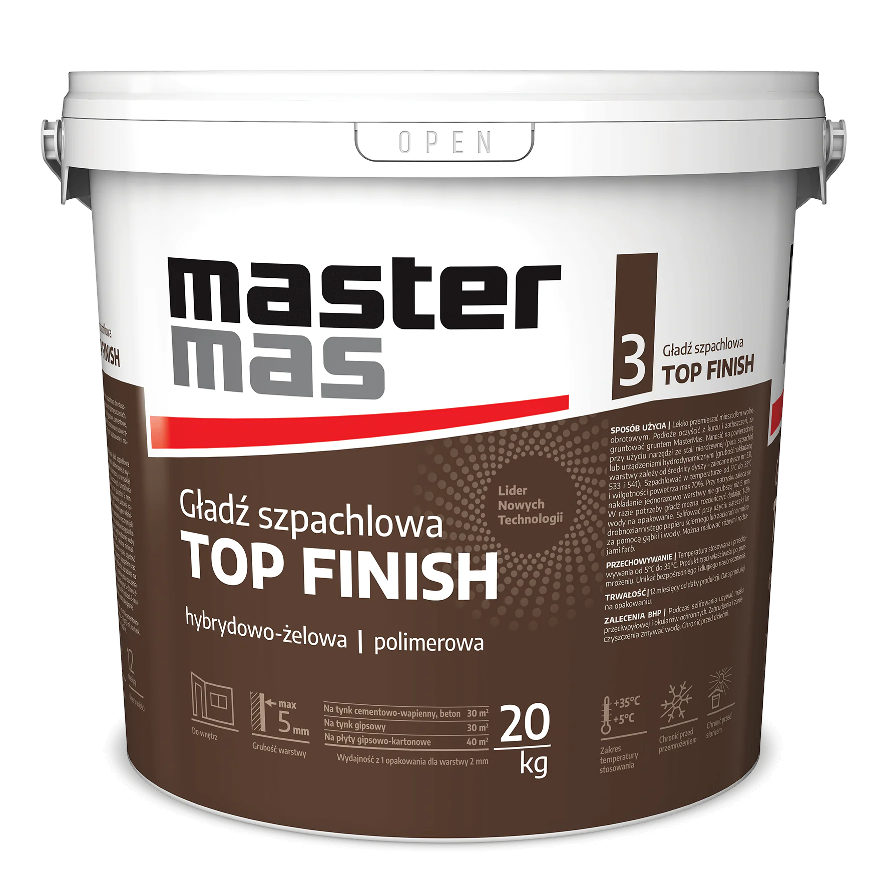 MasterMas Top Finish to żelowa gładź szpachlowa o wysokiej elastyczności i doskonałej przyczepności, idealna do wygładzania ścian i sufitów wewnątrz pomieszczeń. Umożliwia łatwą aplikację ręczną i maszynową, zapewniając perfekcyjnie gładkie powierzchnie. Pakiet paletowy gwarantuje najlepszą cenę, wysoką wydajność oraz darmową dostawę na terenie całej Polski z kodem „MasterFREE”