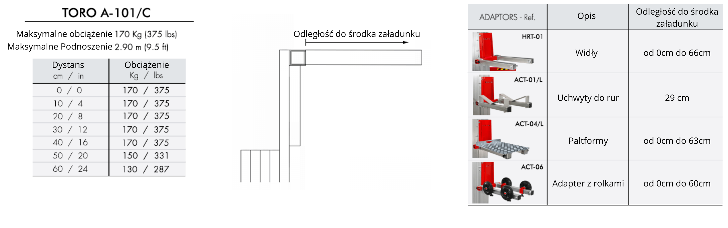 TORO A-101/C (maksymalne obciążenie: 170 kg / maksymalna wysokość: 2,90 m) oraz: