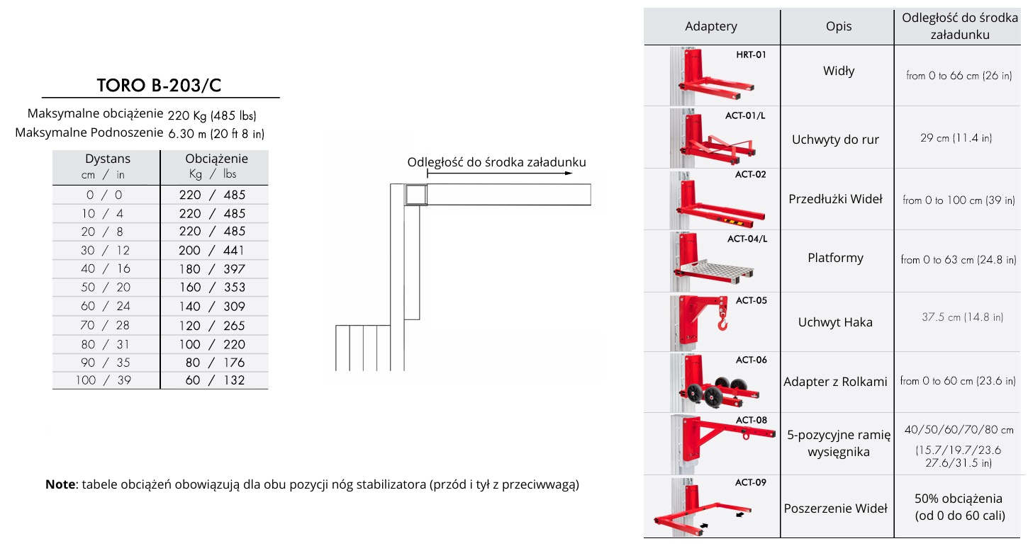 Podnośnik TORO B-203/C – WYPOSAŻENIE