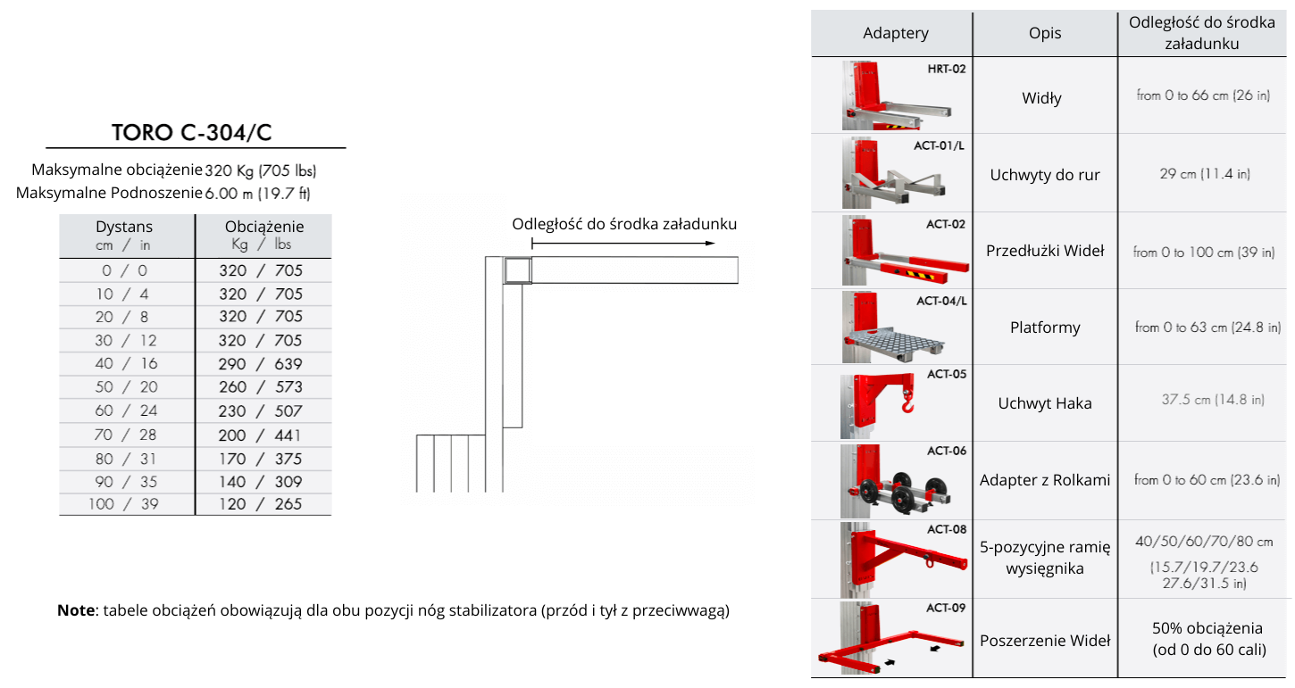 SPRAWDŹ –> TORO C-303 (maksymalne obciążenie: 350 kg / maksymalna wysokość: 5 m)