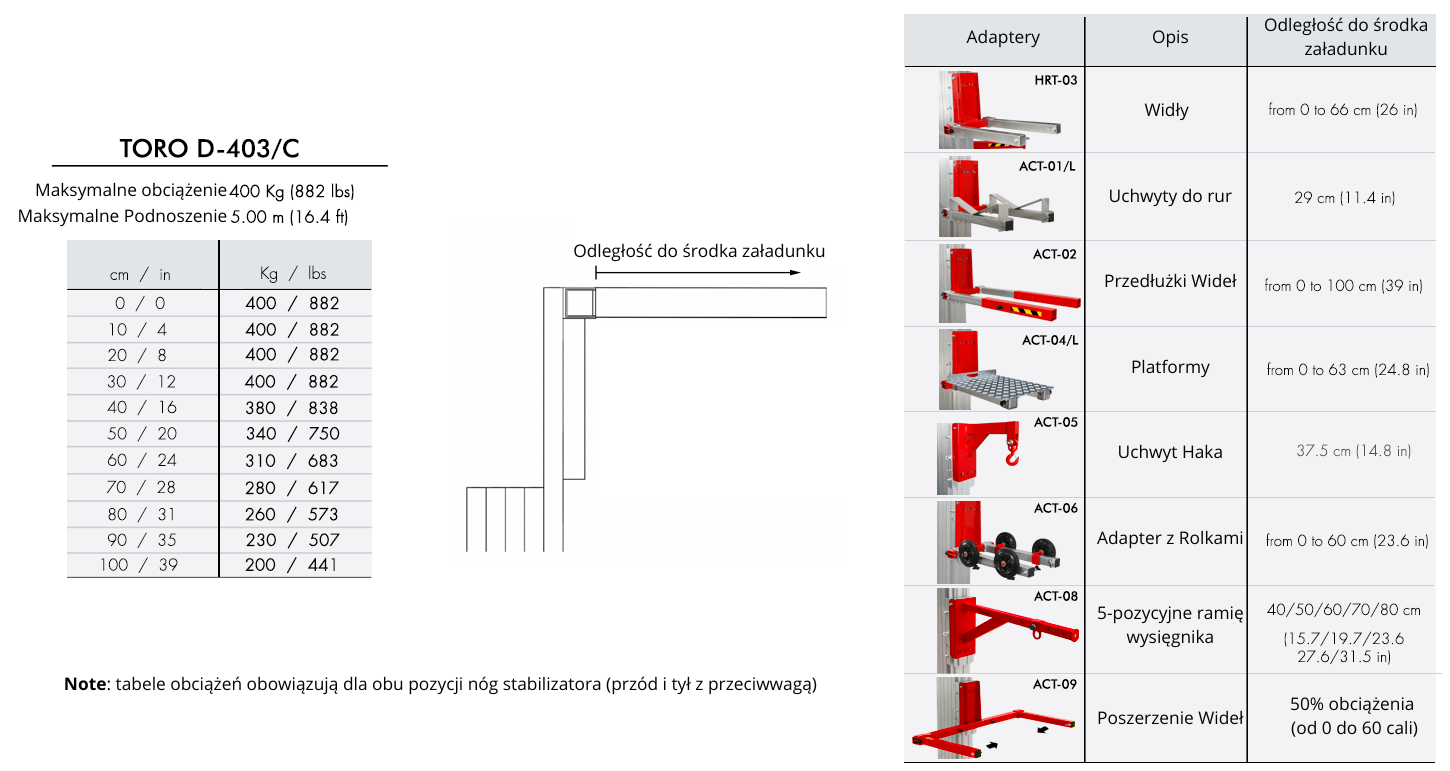 SPRAWDŹ –> TORO D-404 (maksymalne obciążenie: 420 kg / maksymalna wysokość: 5 m)