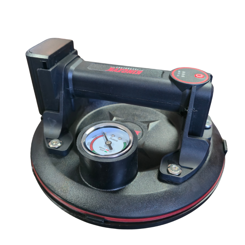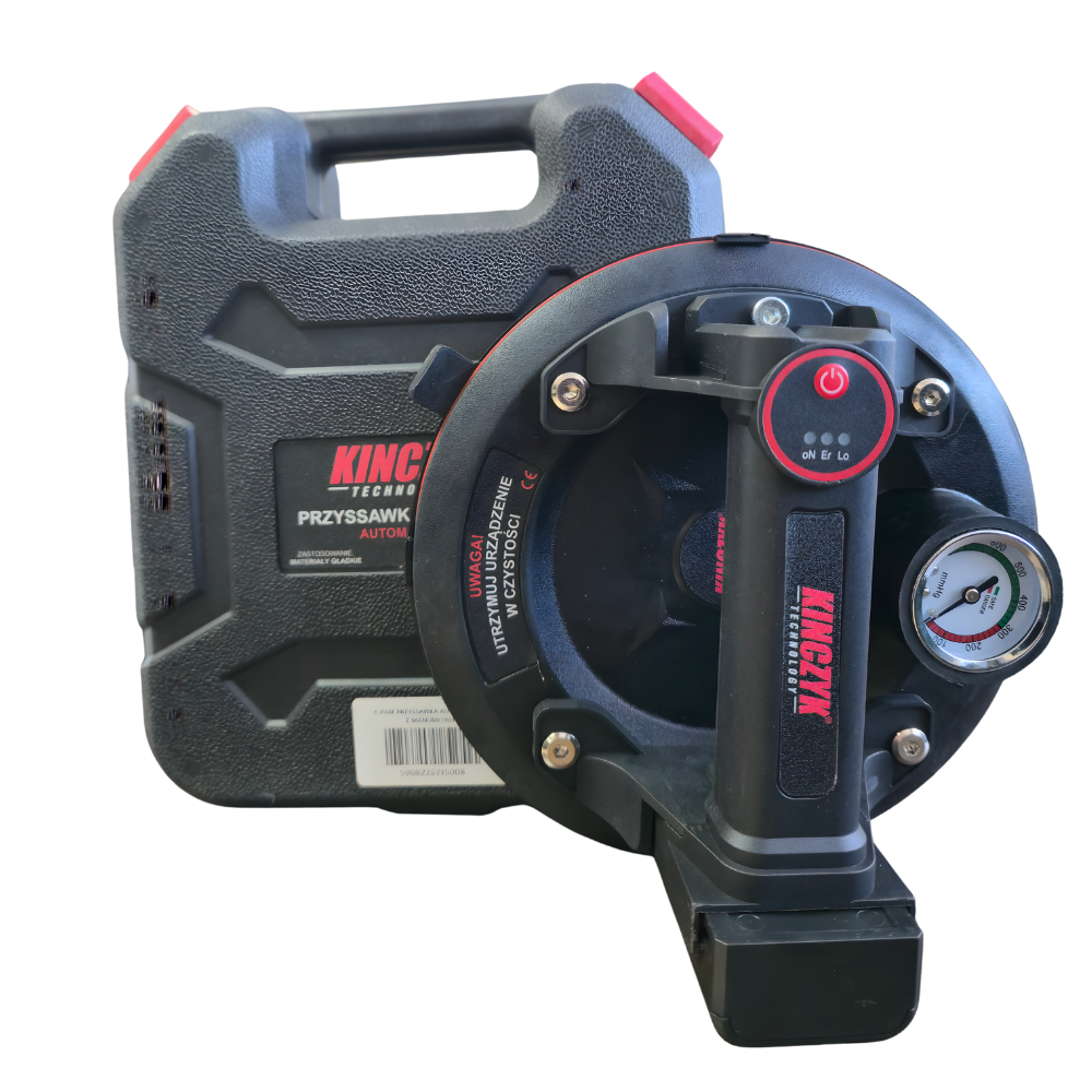Przyssawka do płytek akumulatorowa Kinczyk z automatycznym wytwarzaniem podciśnienia i manometrem zapewnia bezpieczny montaż płytek oraz szkła. Udźwig do 200 kg i długi czas pracy czynią ją niezastąpionym narzędziem dla profesjonalistów.