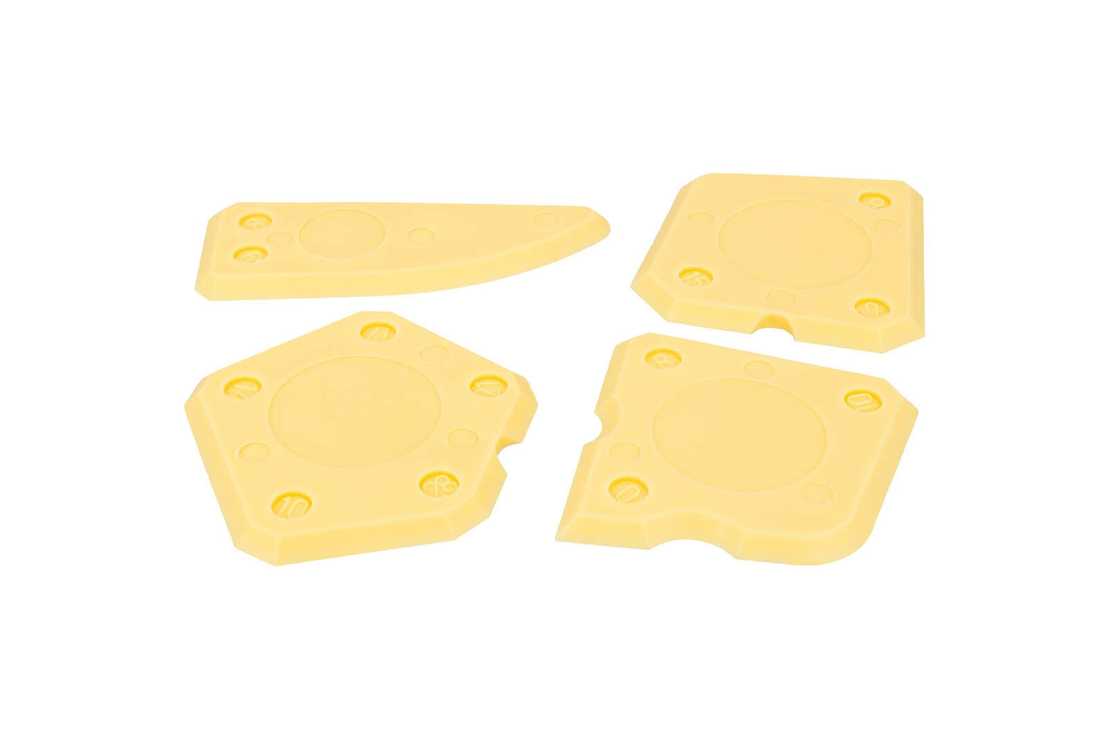 Zestaw składa się z 4 kostek o różnych kształtach, co umożliwia dobór odpowiedniego kształtu do każdej szczeliny. Z pomocą kostek usuwa się nadmiar masy i precyzyjnie kształtuje spoinę, również w narożnikach.
