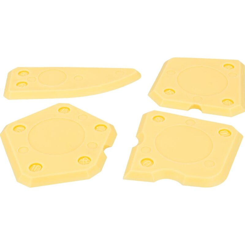 Zestaw składa się z 2 kostek o różnych kształtach, co umożliwia dobór odpowiedniego kształtu do każdej szczeliny. Z pomocą kostek usuwa się nadmiar masy i precyzyjnie kształtuje spoinę, również w narożnikach.