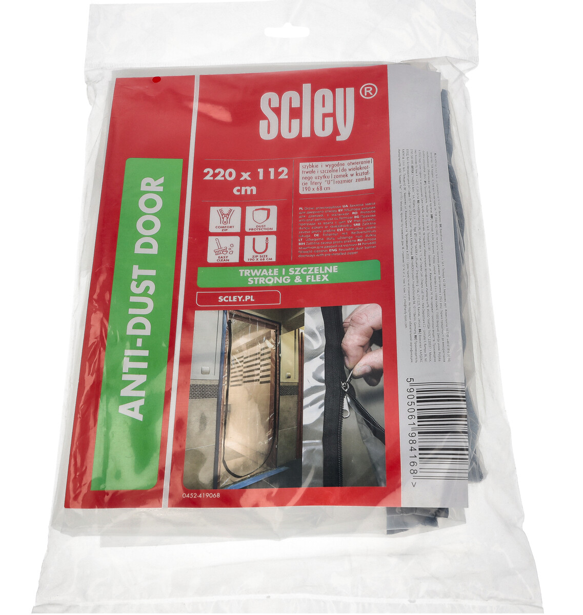 Kurtyna przeciwpyłowa z zamkiem U Scley to foliowe drzwi, które skutecznie zabezpieczają inne pomieszczenia przed pyłem podczas prac remontowych. Transparentna, trwała folia oraz szybki montaż na taśmę zapewniają wygodę i możliwość ponownego użycia.