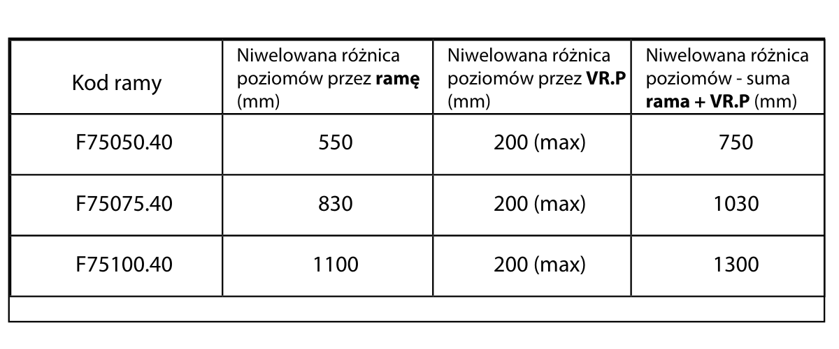 b) W zależności od różnicy poziomów jaki musisz zniwelować przy pomocy ram zestawu schodowego ustawiając wieżę na schodach wybierz odpowiednią ramę